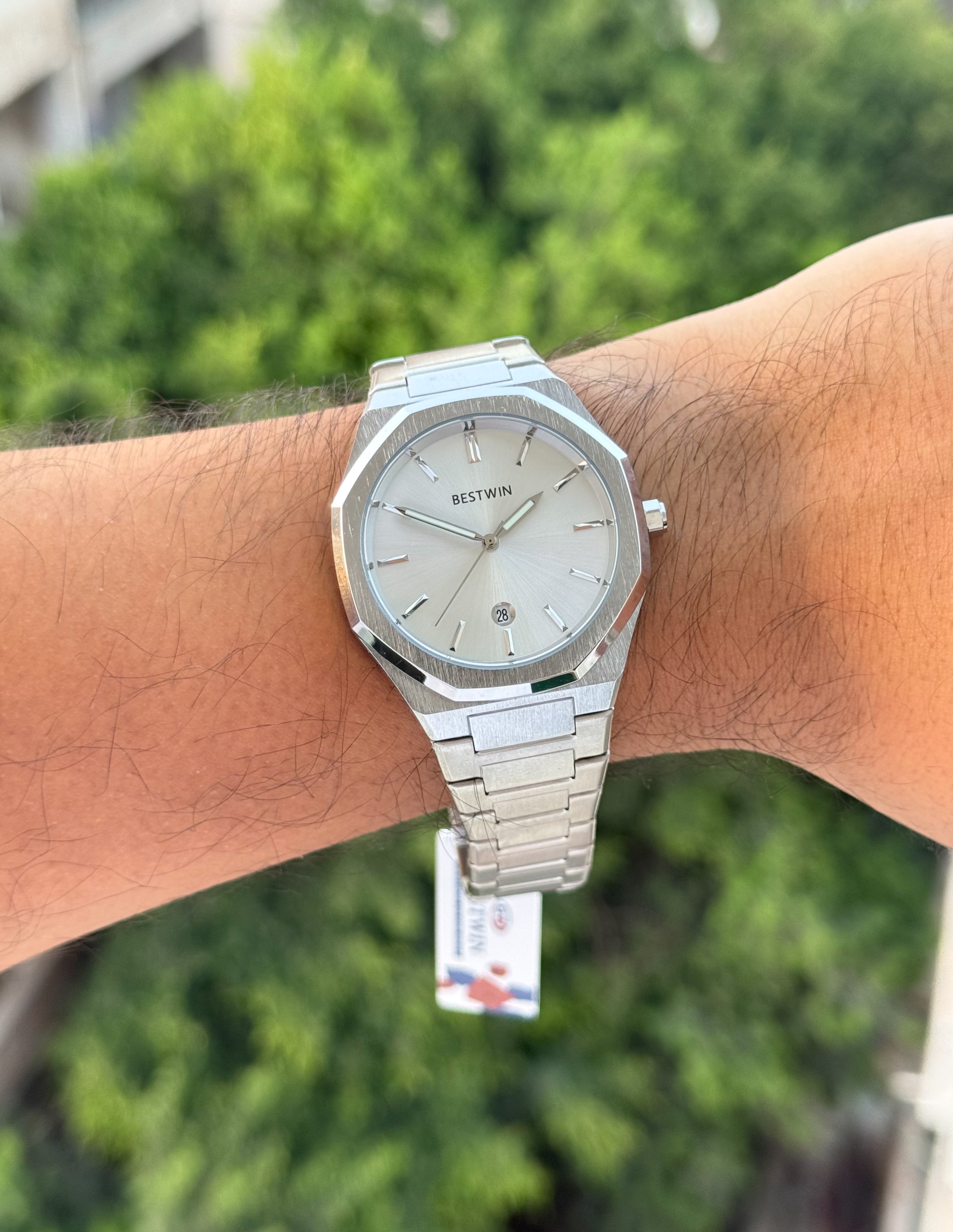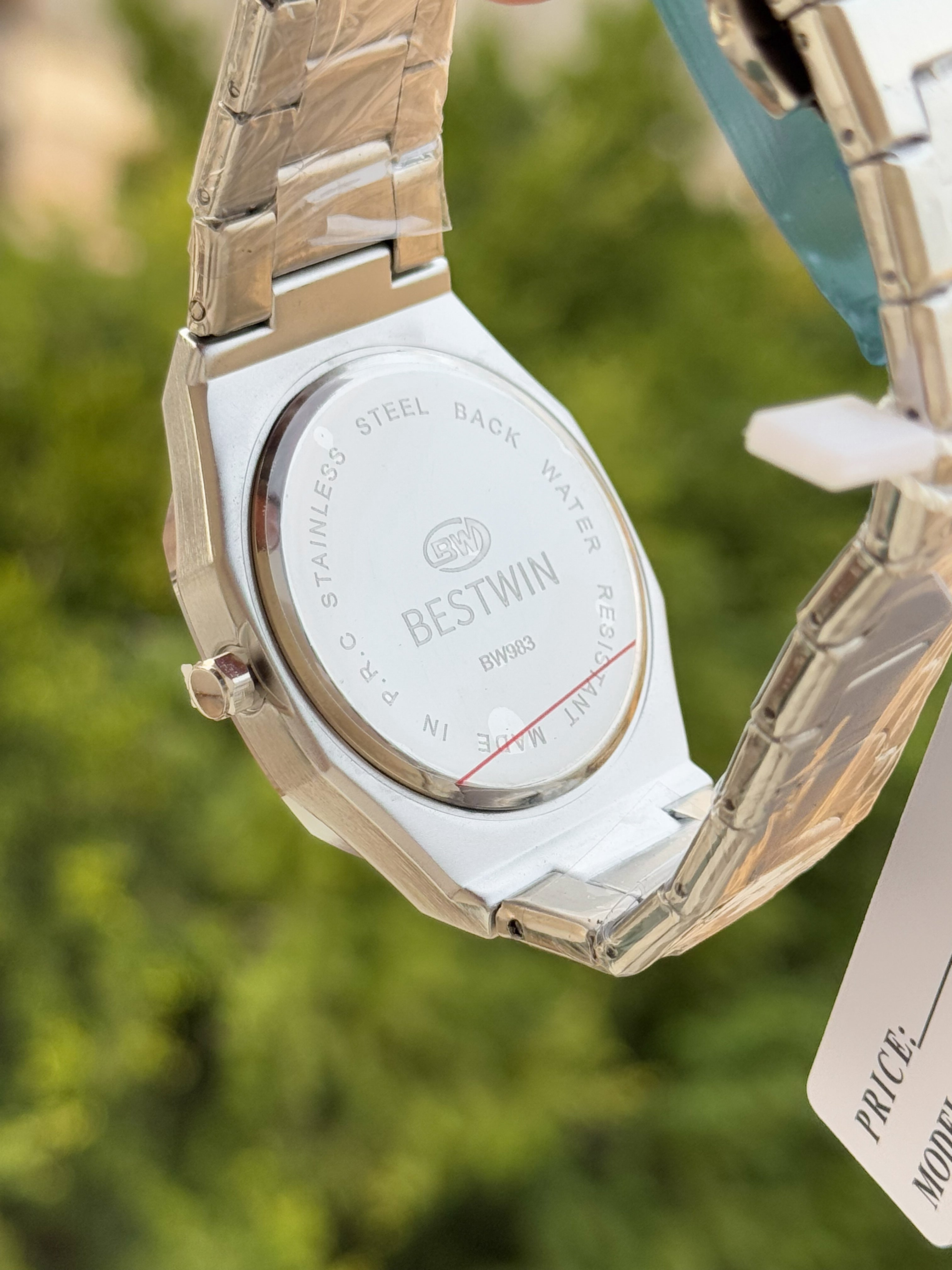 الماكينة ياباني و الساعة صلب ١٠٠٪ضد الصدأ و تغيير اللونعداد التاريخ شغالالسعر شامل البوكس و الشنطة