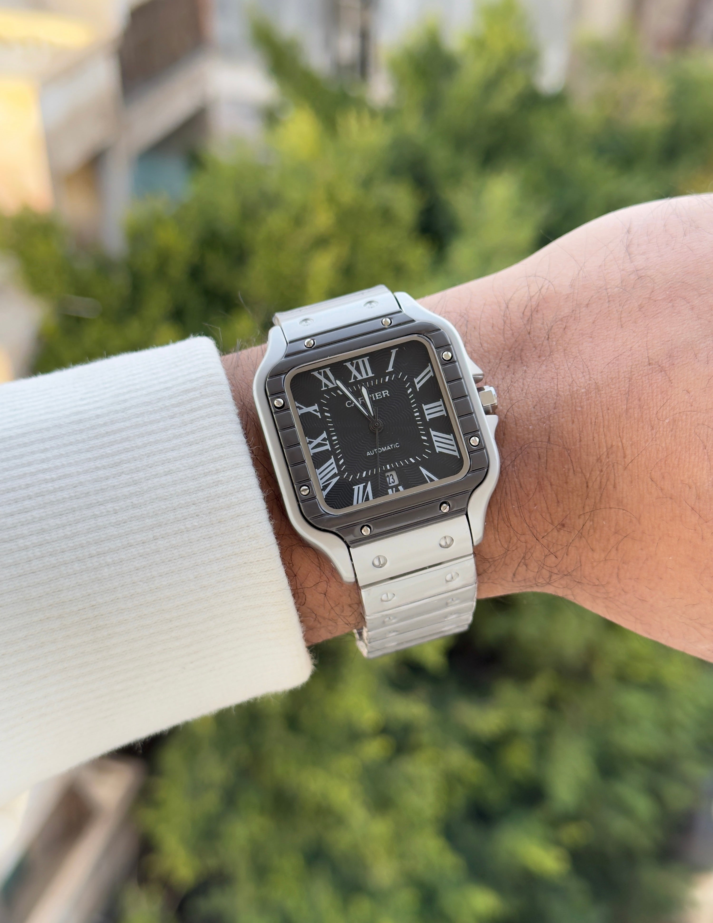 الساعة صلب ١٠٠٪ضد الصدأ و تغيير اللونعداد التاريخ شغالالسعر شامل البوكس و الشنطة