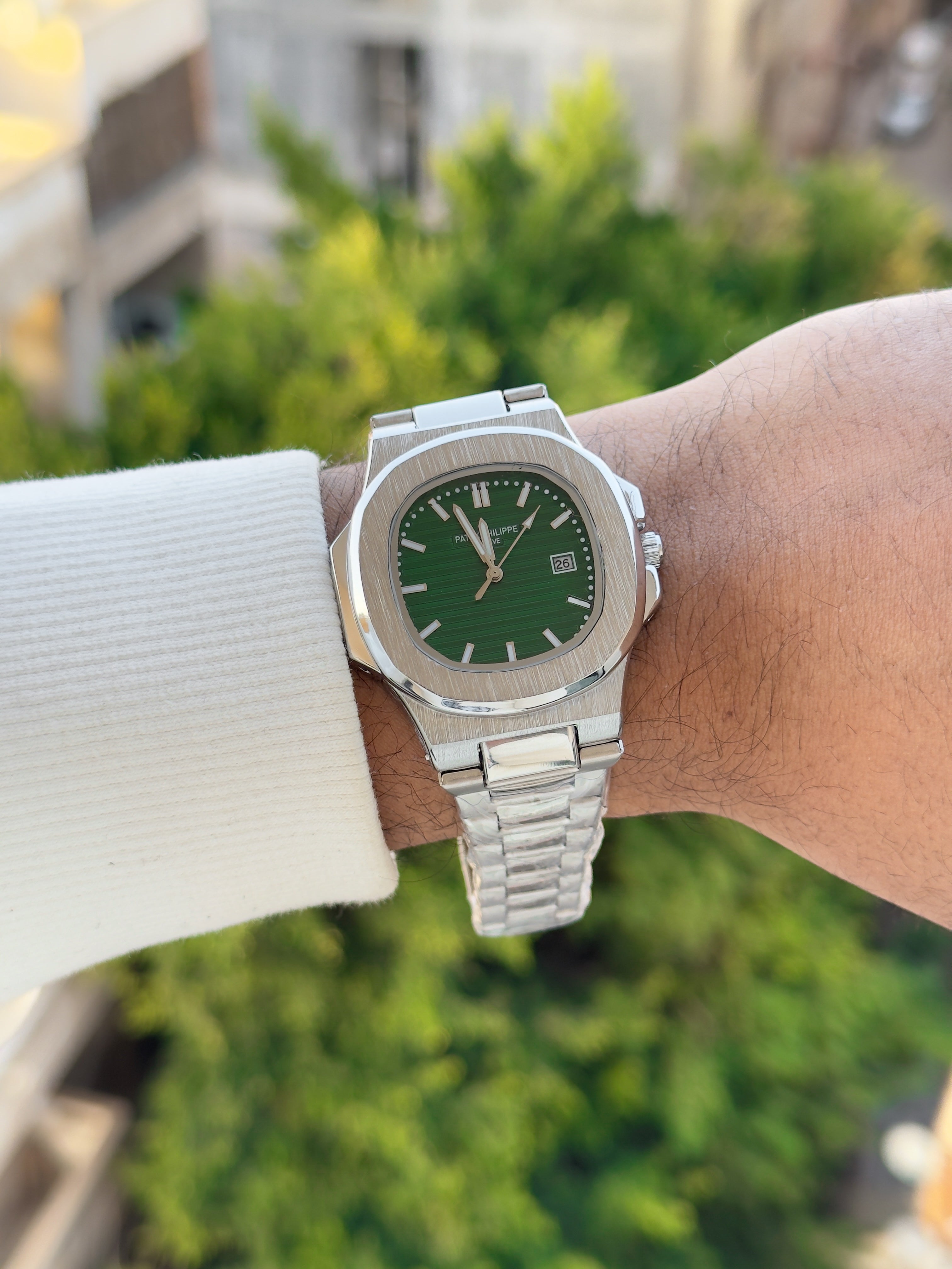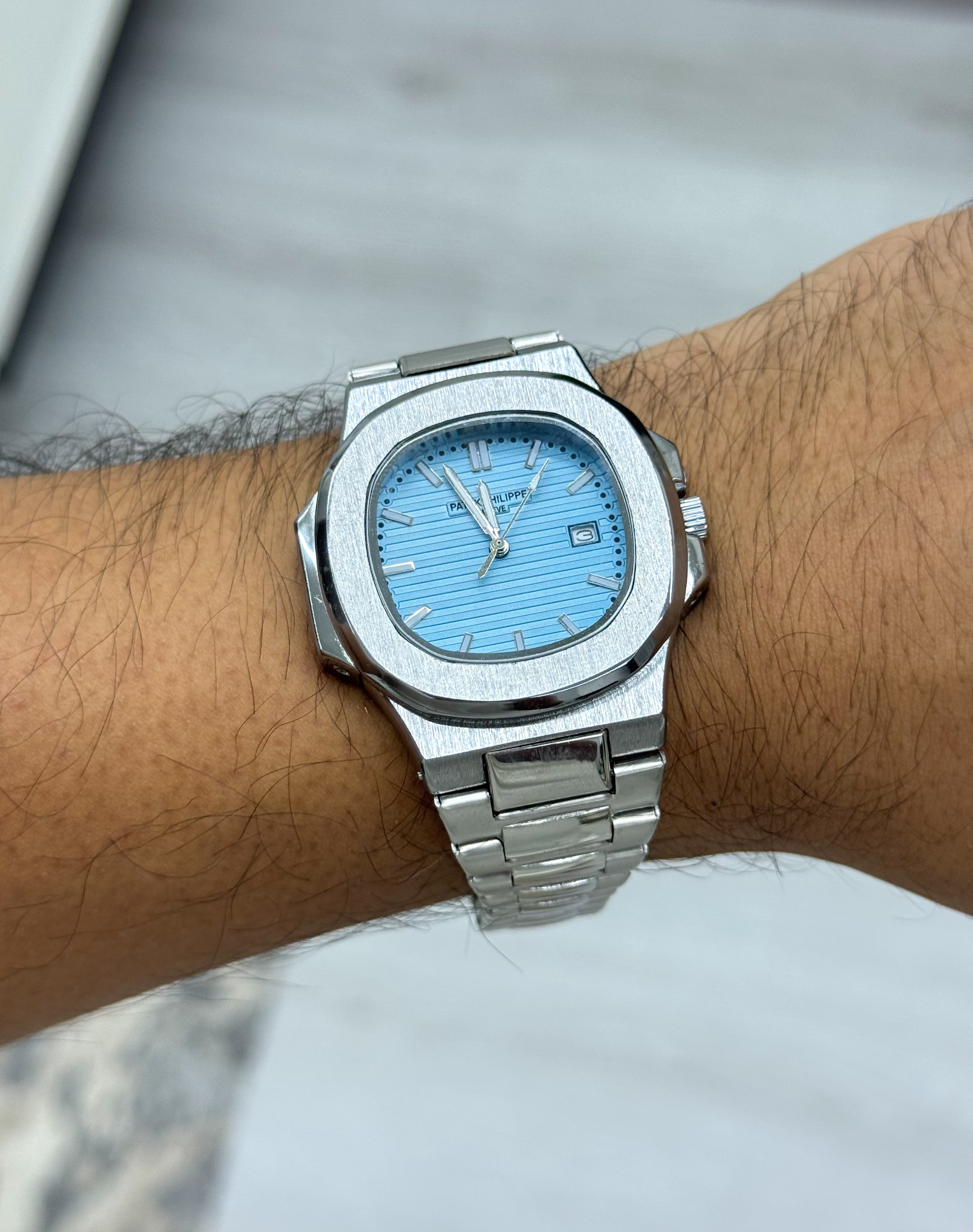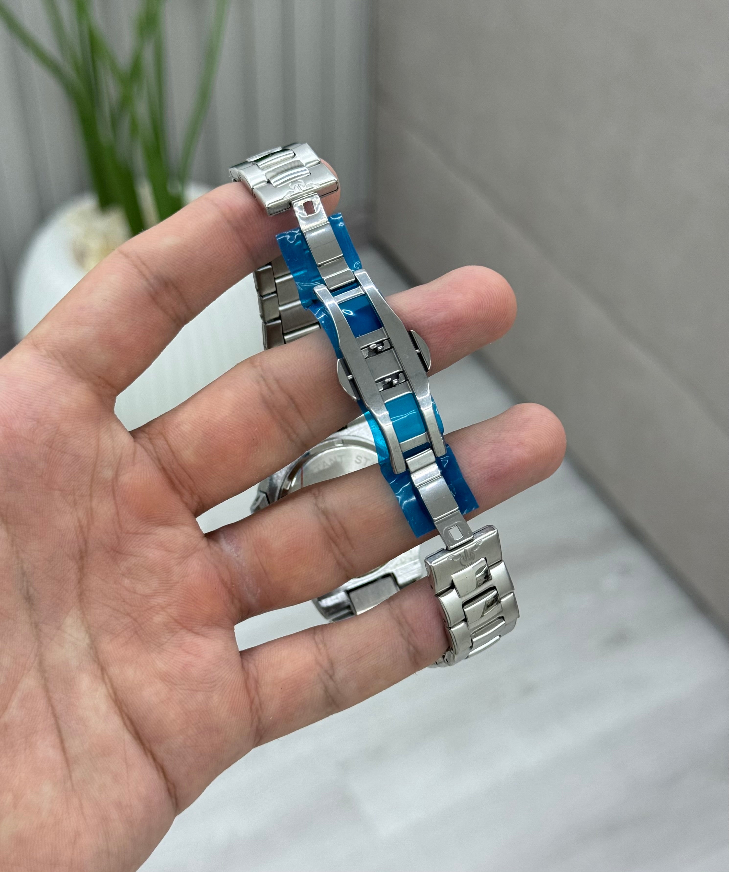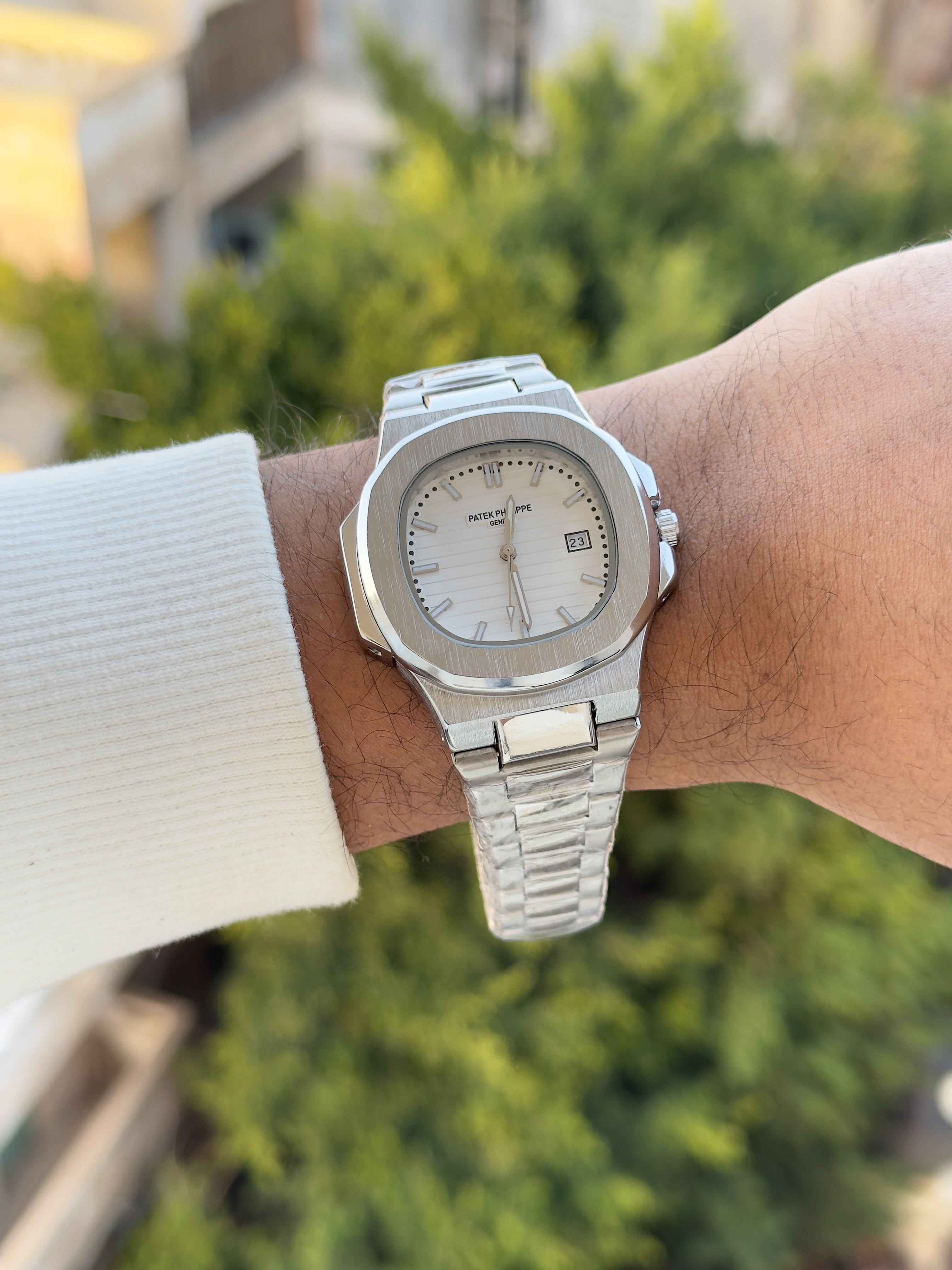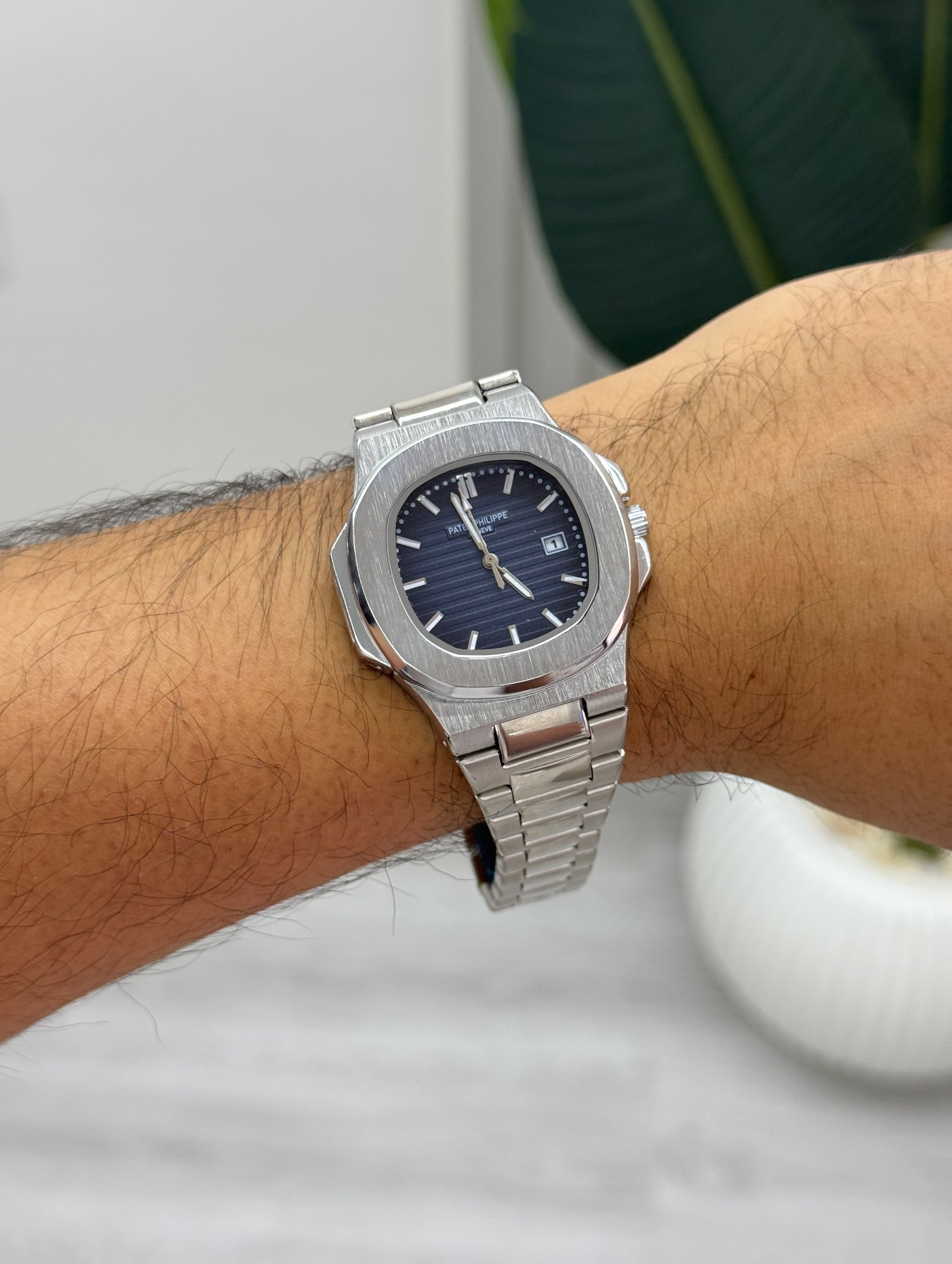 الساعة صلب ١٠٠٪ضد الصدأ و تغيير اللونعداد التاريخ شغالالسعر شامل البوكس و الشنطة
